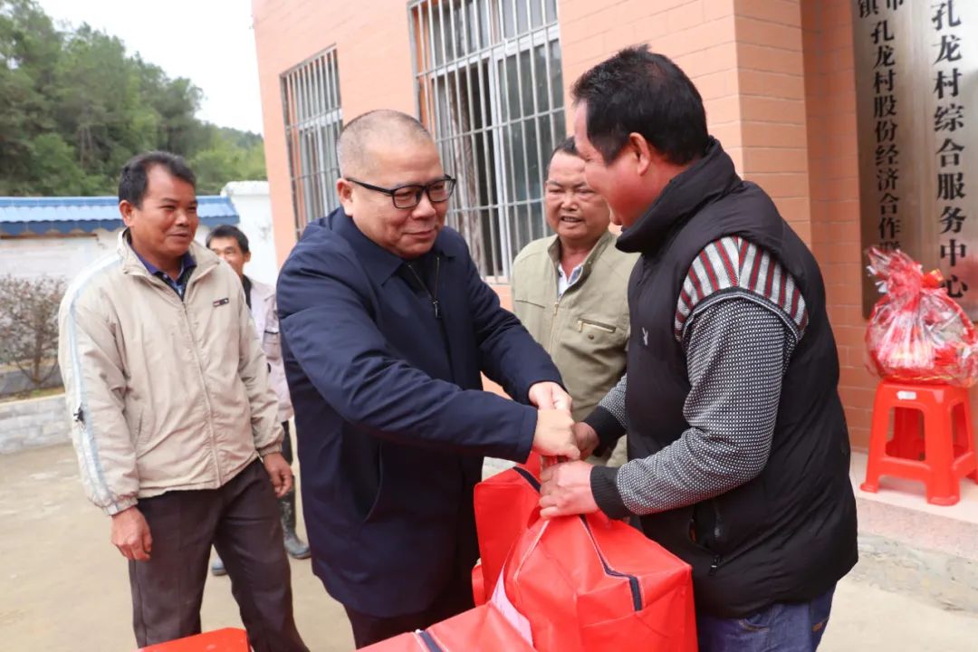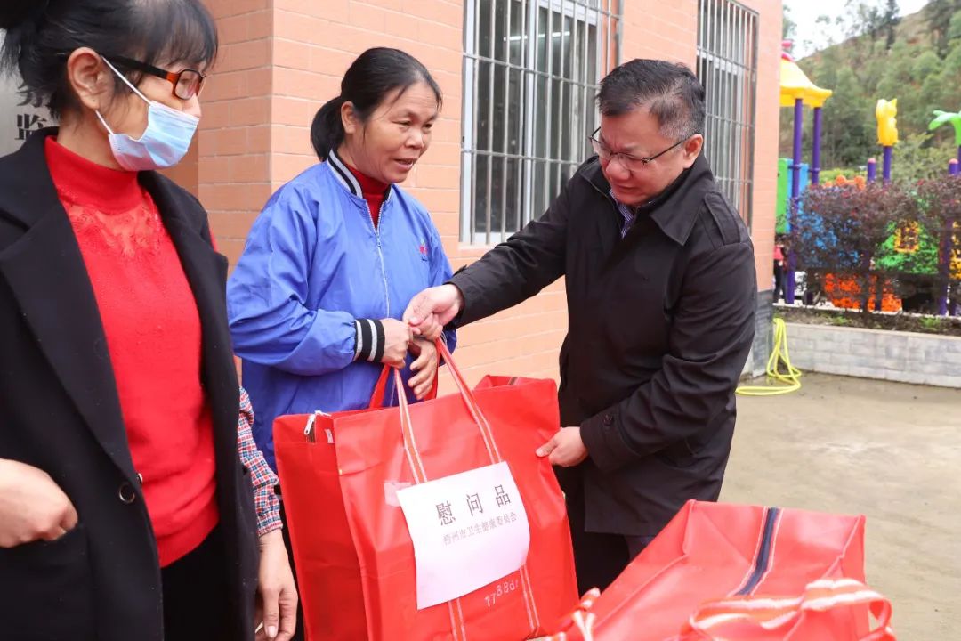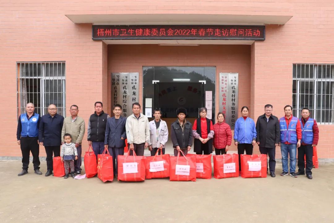 为深入巩固健康扶贫成果,以党建引领促进乡村振兴,进一步增强防返贫监测户与脱贫户的幸福感、获得感、安全感,确保他们温暖过冬,平安过年。1月25日上午,梧州市卫生健康委党组书记、主任宁金沛带队,一行10人前往岑溪市三堡镇孔龙村开展春节走访慰问活动。市卫生健康委党组成员、机关党委书记李丽铭、三堡镇党委书记李芳明、我院党委书记梁平、市中心血站党支部书记黄芳等陪同慰问。 ![]() 新春慰问暖人心