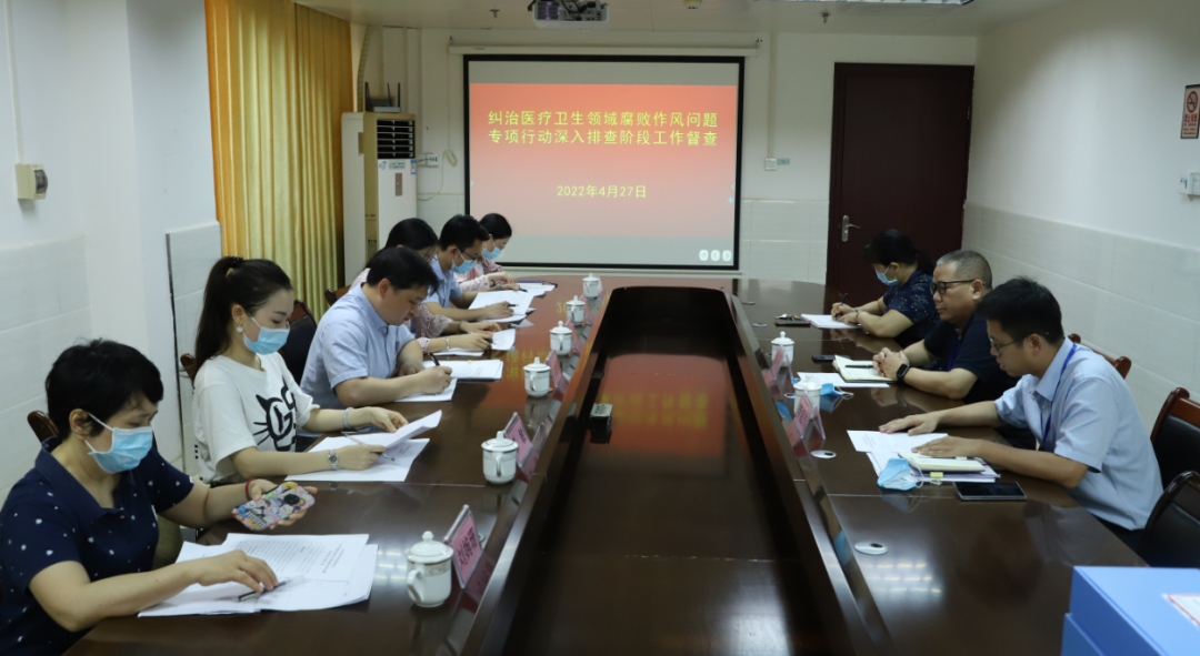 为有效推动深入开展纠治医疗卫生领域腐败和作风问题专项行动,4月27日上午,市卫生健康委督查组一行6人到我院开展纠治医疗卫生领域腐败和作风问题专项行动深入排查阶段工作督查。医院领导班子成员、相关科室负责人陪同督查迎检。