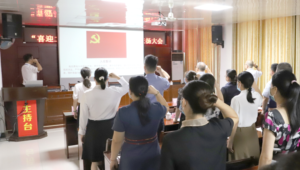“我志愿加入中国共产党,拥护党的纲领,遵守党的章程……”面对鲜红的党旗,院党委专职副书记李超杰带领全体党员重温入党誓词。大家举起右拳,庄严宣誓,铿锵有力、饱含热忱的誓词响彻会场。