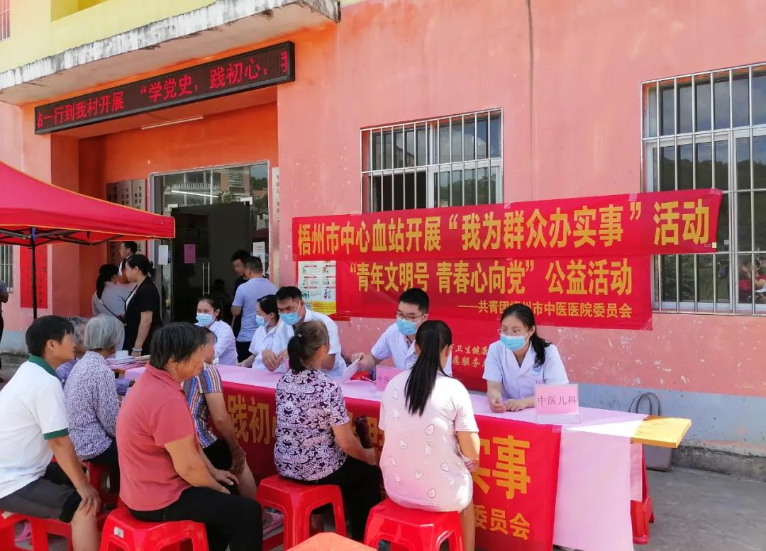 为深入推进学党史、悟思想、办实事、开新局,在“六一”儿童节来临之际,梧州市中医医院党委联合市中心血站党支部到岑溪市三堡镇孔龙村开展“感党恩 跟党走——我为群众办实事”健康为民服务活动。