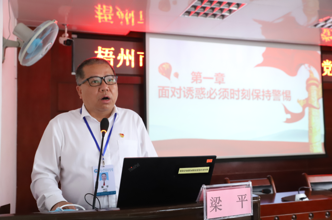此次廉政党课还特别邀请了梧州市纪委监委驻市人大常委会机关纪检监察组组长、机关党组成员赖承强进行授课。