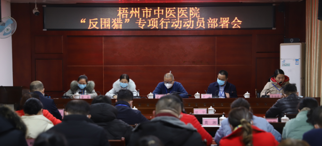 为全面落实党的二十大重大决策部署,深入学习领悟习近平总书记“反围猎”的重要讲话精神,进一步加强党风廉政建设。近期,梧州市中医医院召开了“反围猎”专项行动工作动员部署会。医院班子成员、中层干部参加会议。会议由党委副书记、院长卢正主持。