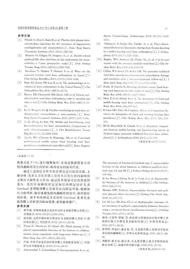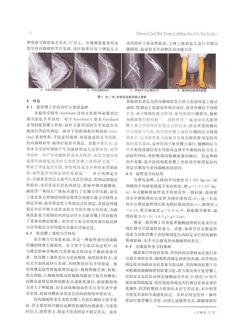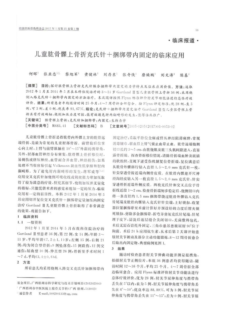 论文-儿童肱骨髁上骨折克氏针十捆绑带内固定的临床应用