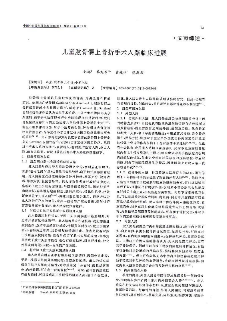 论文-儿童肱骨髁上骨折手术入路临床进展