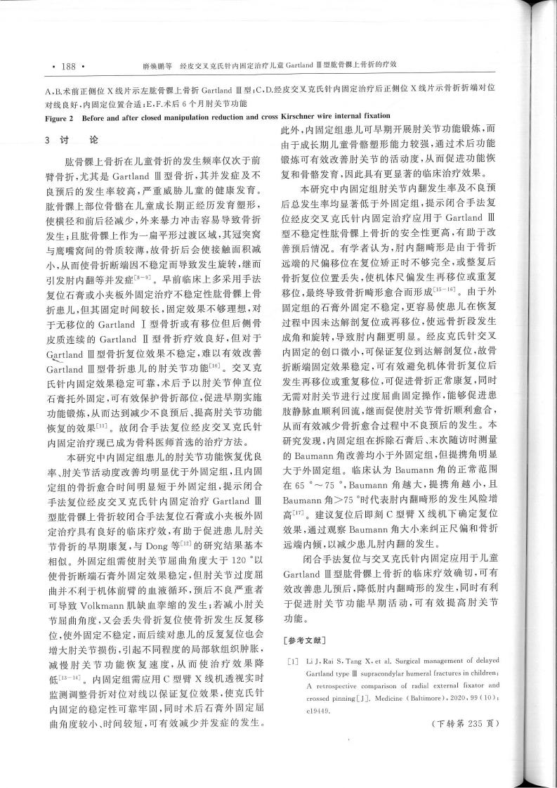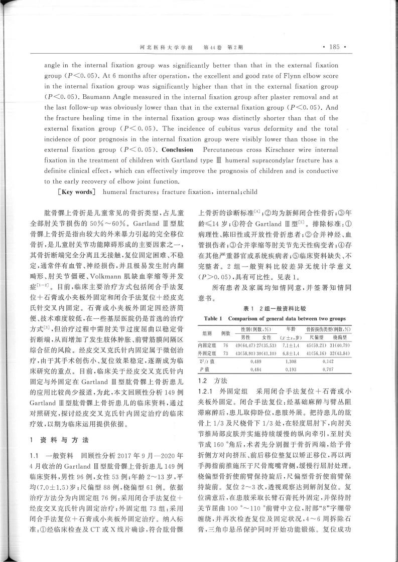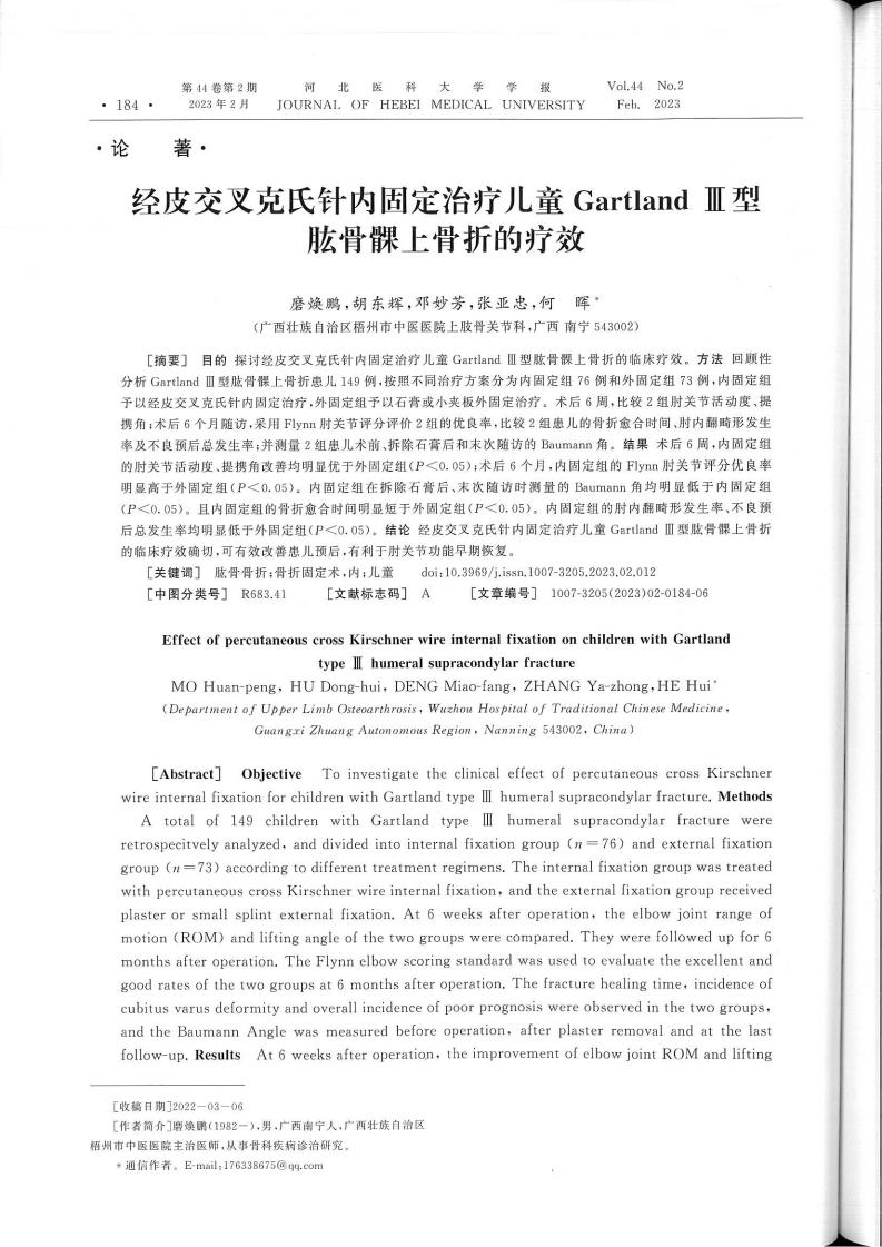 论文-经皮交叉克氏针内固定治疗儿童Gartland Ⅲ型肱骨髁上骨折的疗效
