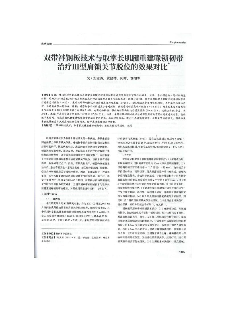 论文-双带袢钢板技术与取掌长肌腱重建喙锁韧带