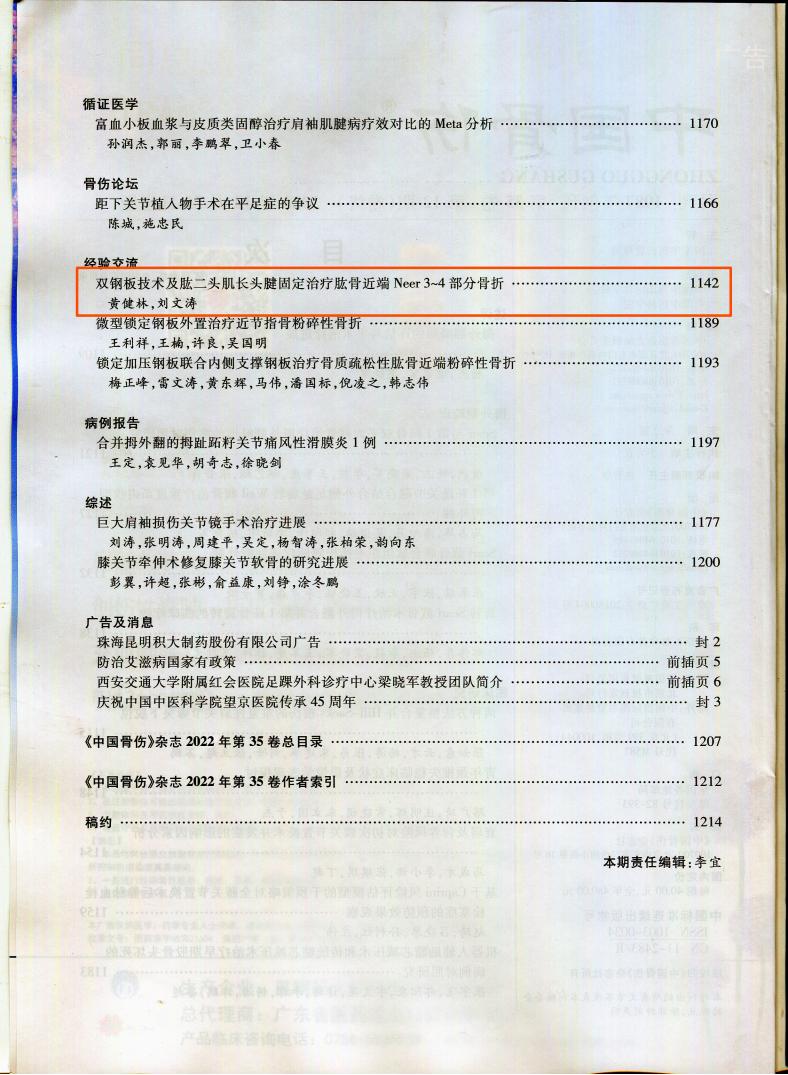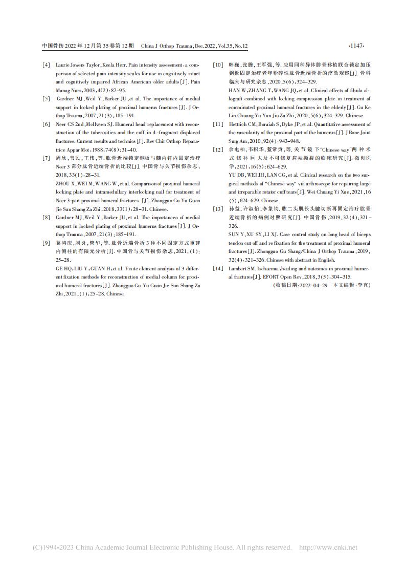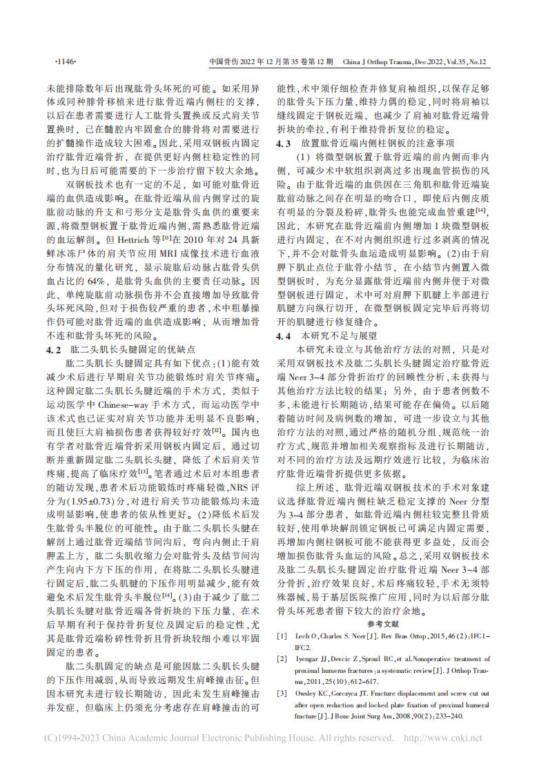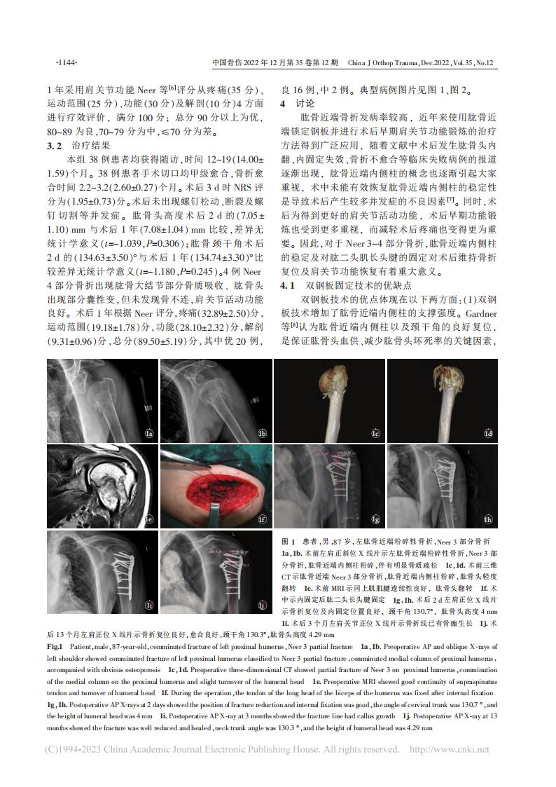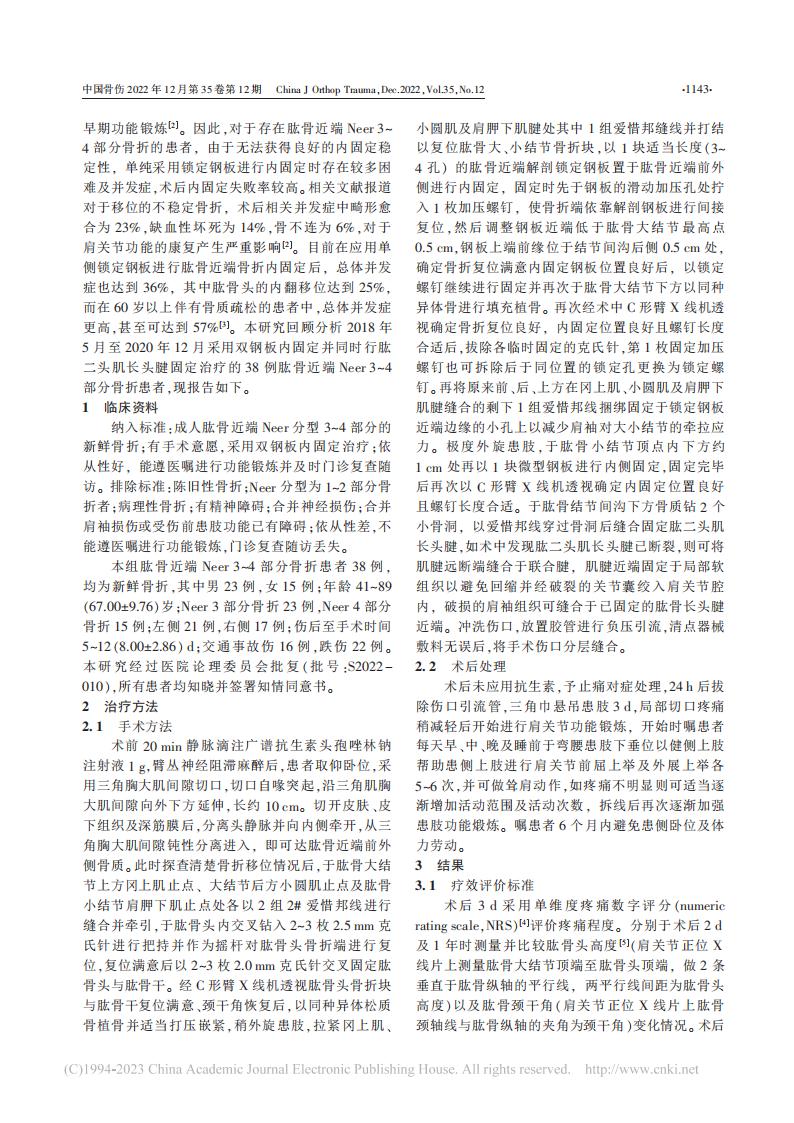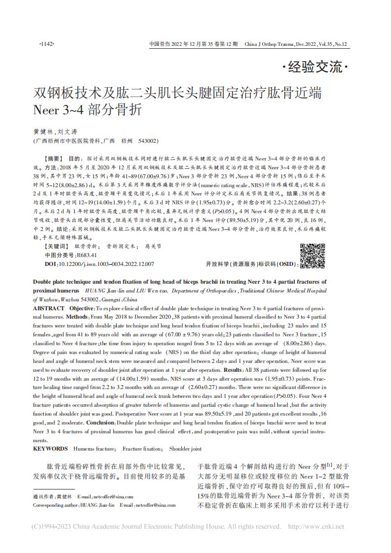 论文-双钢板技术及肱二头肌长头腱固定治疗肱骨近端Neer3~4部分骨折-黄健林(1)(1)