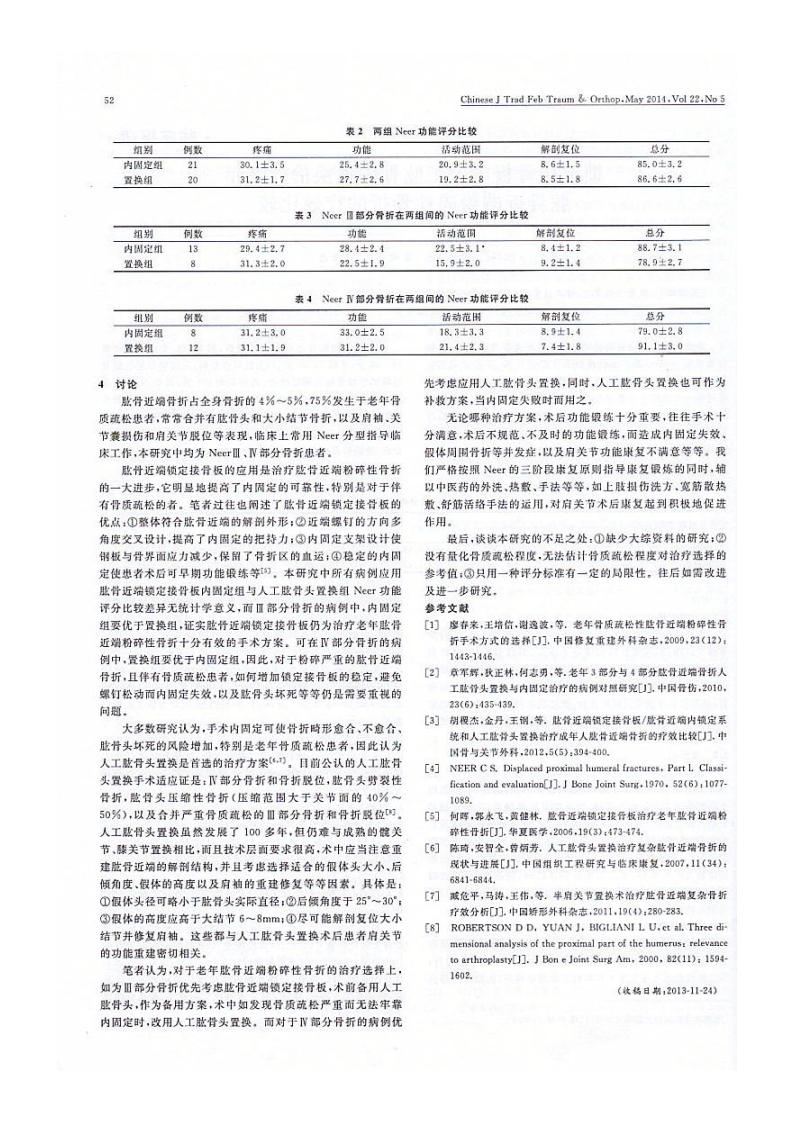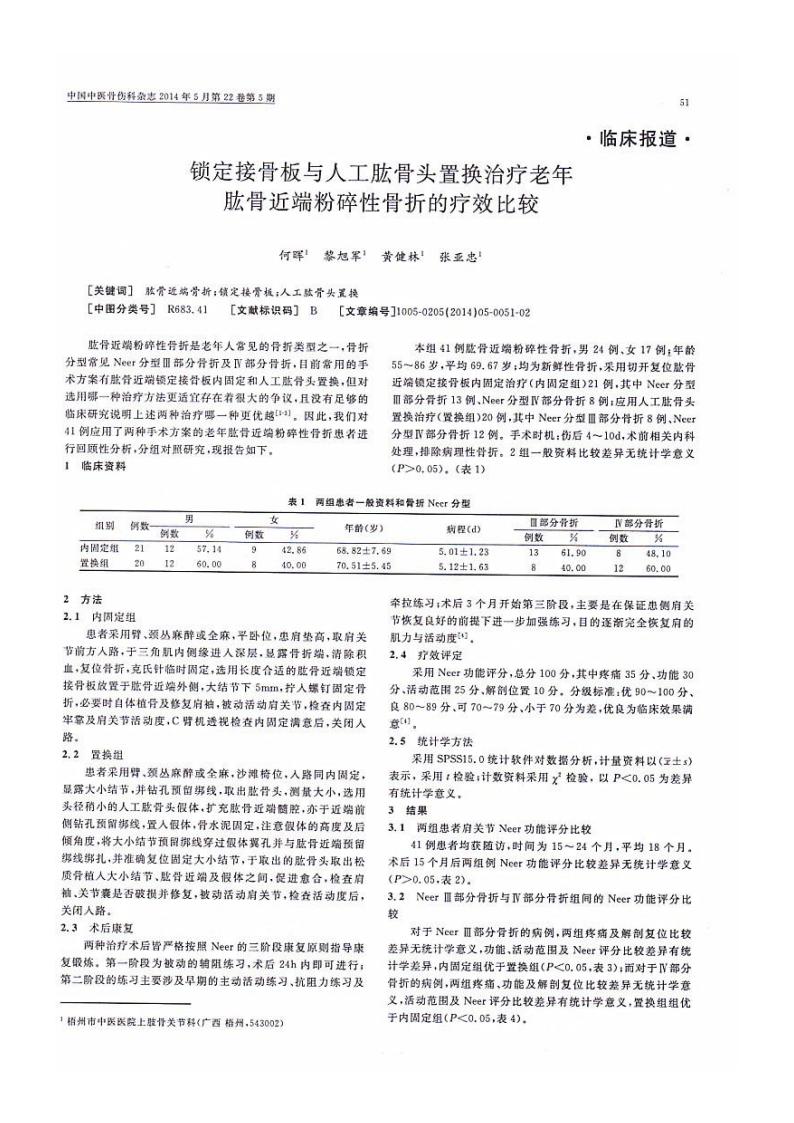 论文-锁定接骨板与人工肱骨头置换治疗老年肱骨近端粉碎性骨折的疗效比较