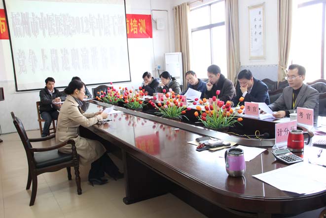我院12月13日举行2012年中层干部竞争上岗述职演讲答辩会,13名中层干部竞岗人针对五个竞岗职位进行了竞岗陈述。此次中层干部竞争上岗工作是我院推进人事制度改革,不断拓宽选人用人渠道,建立中层干部能上能下的管理机制的重要举措,答辩会前,市卫生局党委书记谢英亲临答辩会对竞岗工作进行了指导。