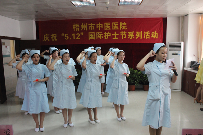 2013年5月12日是101个国际护士节。在宣誓、授帽仪式上,17位年轻护士举起右手,诵响誓言,带起老护士授予的燕帽,从此加入护理工作行列。随后举行的演讲比赛中,9组来自临床科室的护士代表从自己的实际工作出发,真实地表达了自己对护理工作的情感。