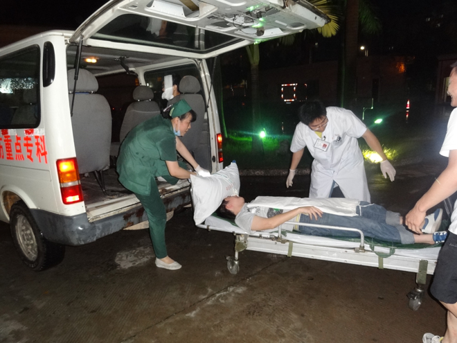 ![]() 首批“伤员”接送到院,医护人员做好交接工作 ![]() 当班总值与医务科长向主管院领导汇报“抢救情况”进展