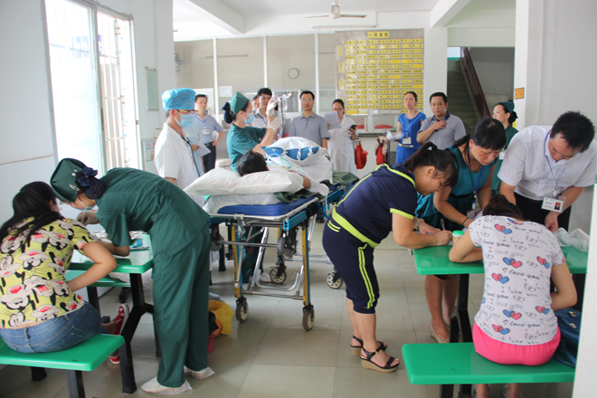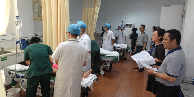 ![]() 模拟食堂环境下突发群体性食物中毒事件 ![]() 评估小组领导监测各抢救小组操作 ![]() 院领导查看演练开展情况 |
