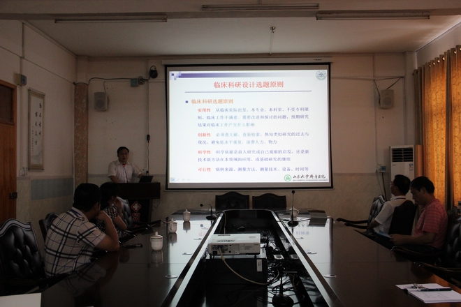 6月25日,承借第14批“中国博士后西部服务团”梧州行活动的开展,山东大学博士后郭海鹏到我院进行了为期一天的交流。郭海鹏博士后是临床医学心血管及呼吸疾病方面的研究专家,在交流活动中,郭海鹏深入医院内科病房和重症监护室就疑难病例的医治与我院相关科室医护人员进行了探讨,同时就临床科研设计及标书撰写为主题,面向全院进行了专题讲座。医院领导以及相关科室医务人员认真听取了专家的讲座,并就自己在科研工作碰到的难题与郭海鹏进行了针对性的交流。