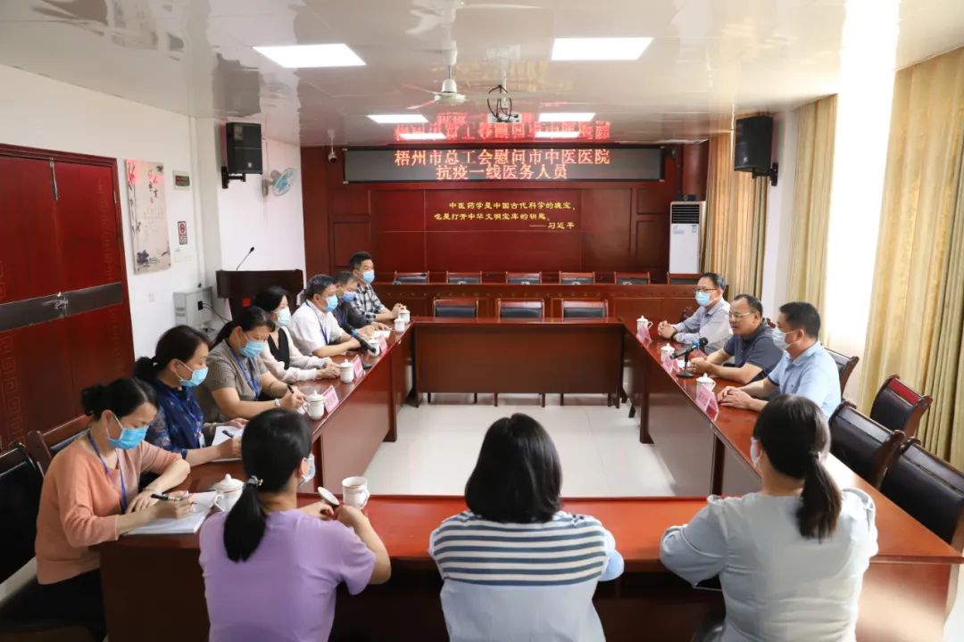 会上,医院工会主席文黛薇汇报了我院派赴各地支援的防疫抗疫医务人员情况2021年11月以来,我院共派出225名医护人员分别赶赴百色、防城港、钦州、崇左、东兴等疫情一线地区开展医疗保障、核酸采样、隔离酒店防控、流行病学调查工作,为全区疫情防控工作贡献了中医力量。