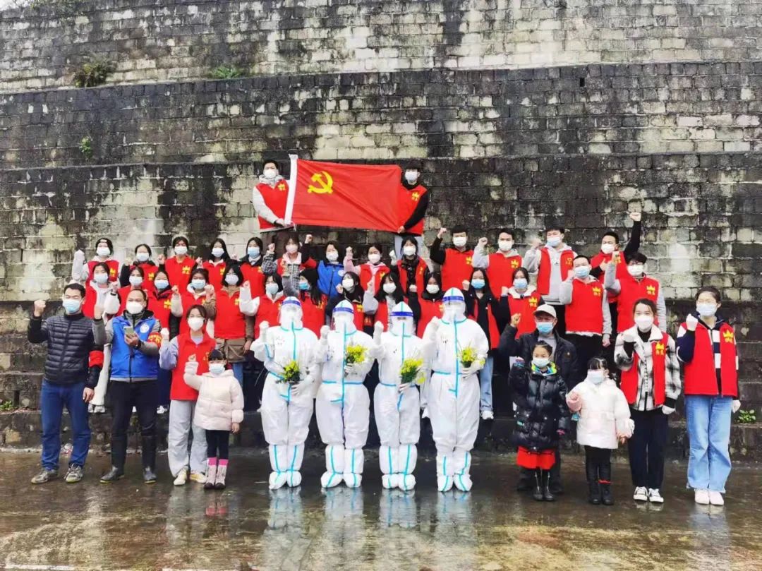 迎接仪式上,梧州市卫健委领导为队员代表送上鲜花致敬。