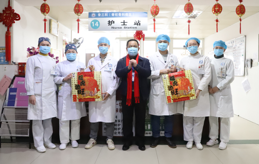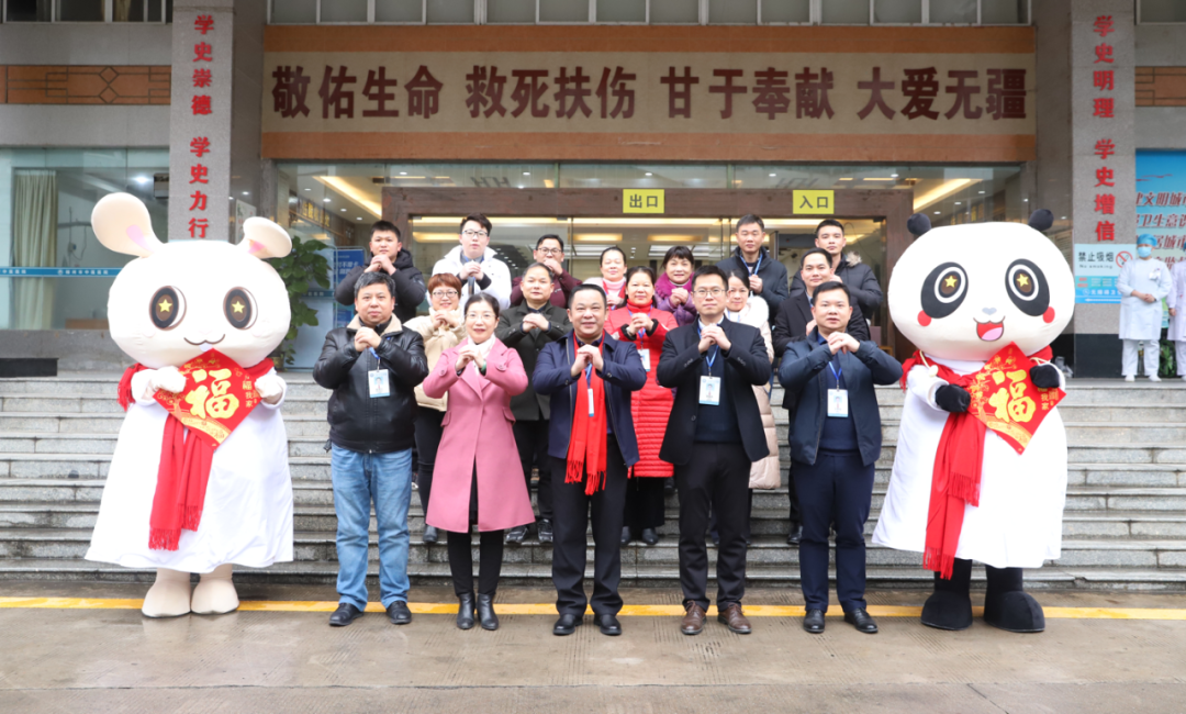 2月1日大年初一上午,医院领导带着对职工的深切牵挂与关怀,为春节坚守在工作岗位上的职工送上新年祝福!这次活动还携手医院儿童医疗和康复领域的形象代言卡通吉祥物“壮壮”、“美美”来送福,寓意携手健康向未来!