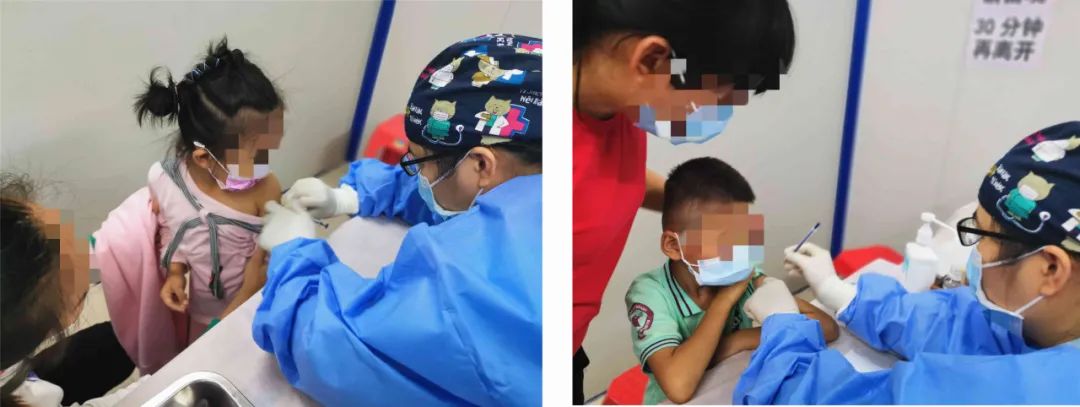 在医院新冠疫苗接种点现场,“为减少孩子恐惧感,我们给孩子一边接种疫苗,一边安抚孩子。”兴龙社区卫生服务中心副主任易敏说, “由于该年龄段的特殊性,在接种疫苗时,我们要求监护人全程陪同。在信息登记处,我们加强了健康询问环节。同时,接种点配备了儿科医生,还有离接种点不到50米处的急诊科医护人员进行医疗保障,确保了接种工作安全。”