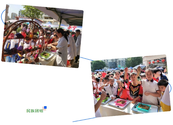 暨民族团结进步实践活动 为营造壮族三月三传统节日氛围,让广大群众共享中医药文化盛宴,我院以铸牢中华民族共同体意识为主线,开展“壮族三月三”中医药文化暨民族团结进步实践活动,助力我市成功创建全国民族团结进步示范市。 ![]() 开展民族团结暨“中医药文化进校园”活动,2023年4月17日上午,参与梧州市新兴二路小学庆祝建区20周年暨2023年“壮族三月三”欢庆活动。我院设置了中药标本展示区、瑶医壮医特色疗法展示区以及香囊制作体验区,让师生们了解壮医、瑶医知识,感受中华民族的多样性和魅力,激发学生对中华医疗文化的兴趣。