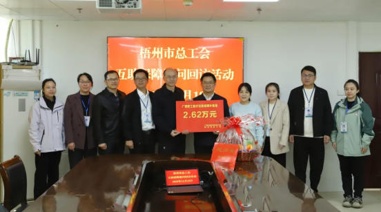 12月19日,梧州市总工会党组书记、常务副主席莫江珊一行到梧州市中医医院,开展互助保障慰问回访活动,为患病职工李某送去2.62万元职工医疗互助补助金及慰问品,传递工会组织与医院的双重关怀。