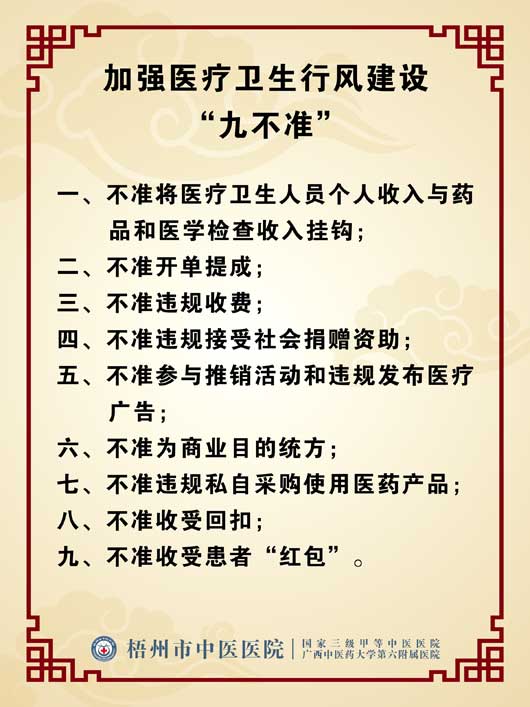 医疗卫生行风建设“九不准”规定