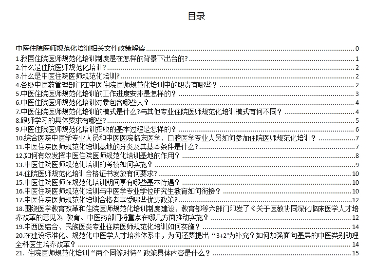 ![]() 1.我国住院医师规范化培训制度是在怎样的背景下出台的? 住院医师规范化培训是临床医师成长的必由之路,建立这一制度是加强临床医师队伍建设的一项重大基础工程,是深化医改和医学教育改革的重大举措,也是提高医疗服务质量和水平的治本之策。国内外长期的医疗卫生工作实践证明,院校医学教育的任务是培养合格的医学毕业生,医学毕业生成长为合格的临床医师需要经过住院医师规范化培训等毕业后医学教育。目前,世界各国普遍把医学教育分为院校教育、毕业后教育和继续教育(即终身教育)三个阶段,住院医师规范化培训属于毕业后教育。住院医师培训萌芽于19世纪末,推行于20世纪五六十年代。目前,发达国家及我国台湾、香港、澳门地区已建立了住院医师规范化培训制度。 党中央、国务院高度重视医疗卫生人才队伍培养和队伍建设,党的十八届三中全会提出:“建立科学的医疗绩效评价机制和适应行业特点的人才培养制度”。刘延东副总理3次就医学人才培养问题作出重要批示:“深化医学教育改革,加快建设适合国情、与国际接轨的医学人才培养体系是当务之急”,“加大医学人才培养力度,满足医疗卫生事业发展和人民群众健康需要,刻不容缓”,这些为做好住院医师规范化培训工作指明了方向。正是在这种背景下,2013年底,由国家卫生计生委、中央编办、国家发展改革委、教育部、财政部、人力资源社会保障部、国家中医药管理局7部委联合印发了《关于建立住院医师规范化培训制度的指导意见》(以下简称《指导意见》)。 推行住院医师规范化培训,既需要对招收对象、培训模式、培训招收、培训基地、培训内容和考核认证等医学教育措施做出规范的制度性安排,也需要明确财政、人力资源社会保障、发展改革等相关政策保障。中间经历了大量的调查研究、政策研讨和部委间的沟通协调,最终形成该《指导意见》。 2.什么是住院医师规范化培训? 住院医师规范化培训,是指高等院校医学类专业本科及以上学生,即临床医学类、口腔医学类、中医学类和中西医结合类学生,在5年医学院校毕业后,以住院医师身份接受的系统化、规范化培训。住院医师规范化培训按内科、外科、全科、儿科、精神科等不同专业方向进行,全科医生规范化培养是住院医师规范化培训的重要组成部分。住院医师规范化培训属于毕业后教育,主要模式是“5+3”,即5年医学类专业本科教育后,进行3年住院医师规范化培训。培训在省级及以上卫生健康委员会、中医药行政管理部门认定的具备良好临床医疗和教育培训条件的培训基地进行,以在临床有关科室轮转为主,培训对象在经验丰富的上级医师指导下从事临床诊疗,接受理论与实践紧密结合的教育培训,着重培育和提高临床医疗预防保健康复能力,达到能够独立、正确、规范地处理临床常见问题,并为今后具备处理复杂疑难问题的能力奠定基础,培训内容主要包括医德医风、临床实践技能、专业理论知识、政策法规、人际沟通交流等.完成培训并通过过程考核和结业考核者,可获得全国统一的《住院医师规范化培训合格证书》。 3.什么是中医住院医师规范化培训? 中医住院医师规范化培训是中医药毕业后教育的重要组成部分,是中医临床医师队伍建设的基础环节,其目标是为各级各类医疗机构培养具有良好的职业道德,掌握扎实的中医药基础理论、专业知识、临床技能和必要的现代医学知识与技术,能独立、规范承担常见病、多发病及某些疑难危重病证诊疗工作的合格中医医师(2023年修订)。 4.各级中医药管理部门在中医住院医师规范化培训中的职责有哪些? (1)中医药管理部门对中医住院医师规范化培训实行全行业管理、分级负责,充分发挥中医药相关行业协会、专业学会和有关部门的优势和作用。 (2)国家中医药管理局负责全国中医住院医师规范化培训的统筹管理,健全协调机制,制订培训政策,编制培训规划,指导监督各地培训工作。根据需要组建专家委员会或指定有关行业组织、单位负责全国中医住院医师规范化培训的具体业务技术建设和日常管理工作。 (3)各省级中医药管理部门参照《住院医师规范化培训管理办法(试行)》中省级卫生计生行政部门的职责,负责本地区中医住院医师规范化培训的组织实施和管理监督。按照国家政策规定,制订本地实施方案和措施,编制落实培训规划和年度培训计划,并纳入本省培训总体规划和年度培训计划;按照国家规划与标准,建设、认定和管理本地中医住院医师规范化培训基地(含中医类别全科医生规范化培养基地,下同),并报送国家中医药管理局备案;根据需要组建专家委员会或指定有关行业组织、单位负责本地中医住院医师规范化培训的具体业务、技术建设和日常管理工作。 省级以下卫生健康委员会、中医药行政管理部门根据各自职责,配合做好当地中医住院医师规范化培训有关工作。 5.中医住院医师规范化培训的工作进度安排是怎样的? 2014年,结合《指导意见》的贯彻落实,各省(区、市)中医药管理部门要抓紧建立完善本地中医住院医师规范化培训体系和工作保障机制,结合本地实际制订出台相应的实施办法、考核管理规定等各项具体的政策措施,建立健全财政补助机制;国家层面将开展有中央和地方财政专项经费支持的培训工作,对参加培训的学员、基